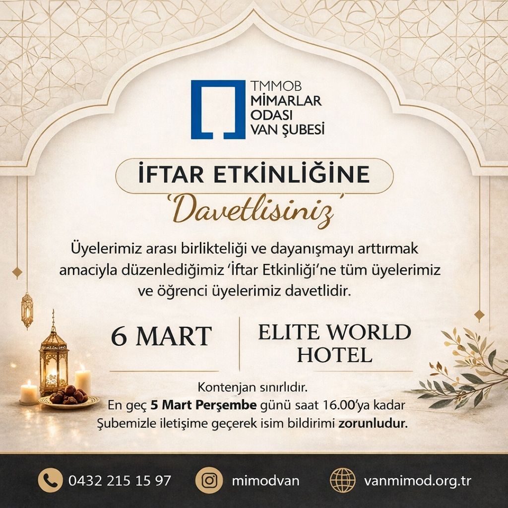 Üyeler arası birlikteliği ve dayanışmayı artırmak amacıyla düzenlediğimiz bu anlamlı akşamda tüm üyelerimizi ve öğrenci üyelerimizi iftar yemeğine davet ediyoruz.