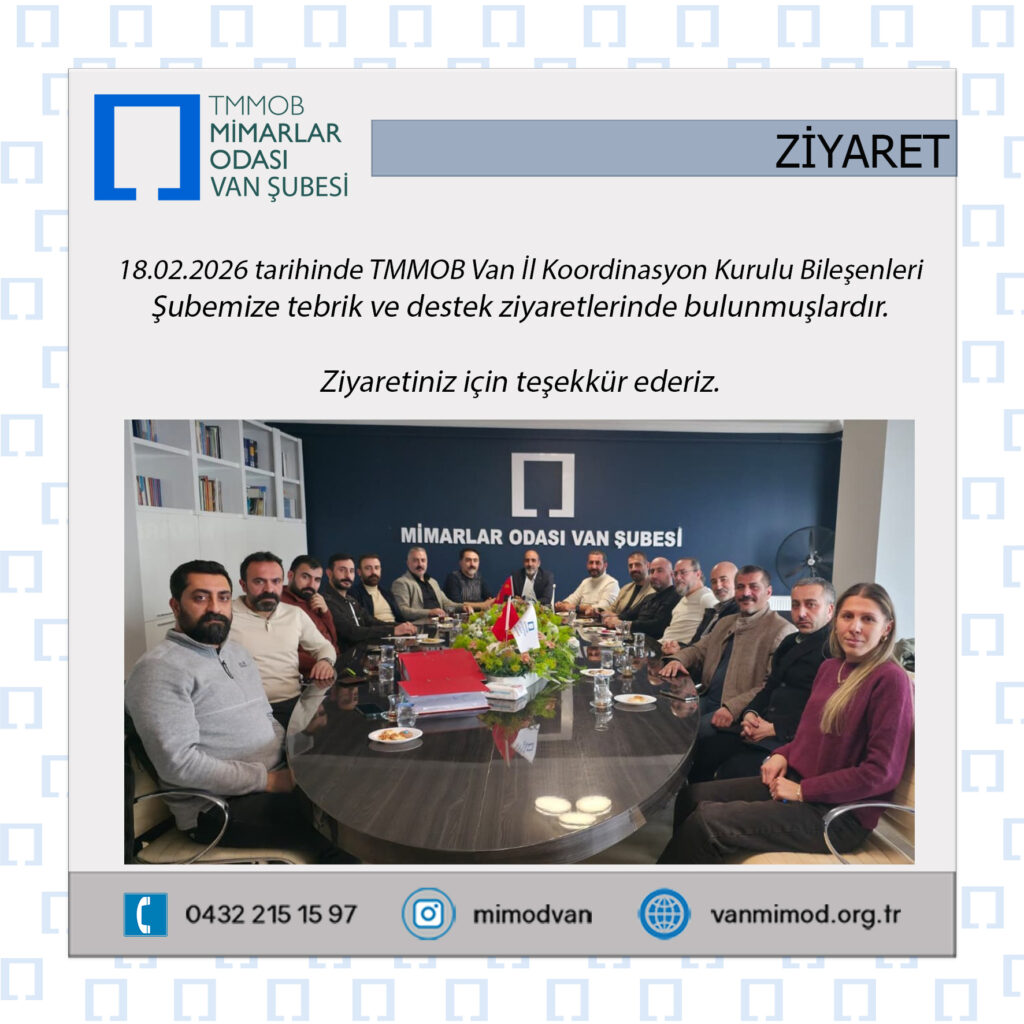 18.02.2026 tarihinde TMMOB Van İl Koordinasyon Kurulu Bileşenleri Şubemize tebrik ve destek ziyaretlerinde bulunmuşlardır.